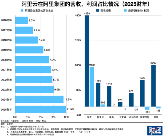 阿里云在阿里营收占比约12%,利润占比约5%,它是阿里的新引擎。2025年初,阿里管理层讨论后认为,阿里云必须直接为股东创造回报,成为影响公司股价的关键“砝码”。