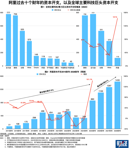 按2028财年最高资本支出1510亿元计算,阿里过去七个财年(2019财年-2025财年)经营性现金流、期末现金余额均高于这个数据。阿里靠自身业务造血可以覆盖投资成本,且还有现金储备作后盾。