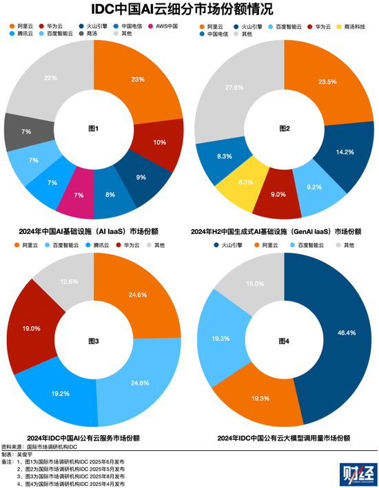 AI转型让阿里云巩固了优势。国际市场调研机构IDC数据显示,阿里云在AI公有云服务、AI IaaS(AI基础设施)、GenAI IaaS(生成式AI基础设施)等中国AI云细分市场位居首位。